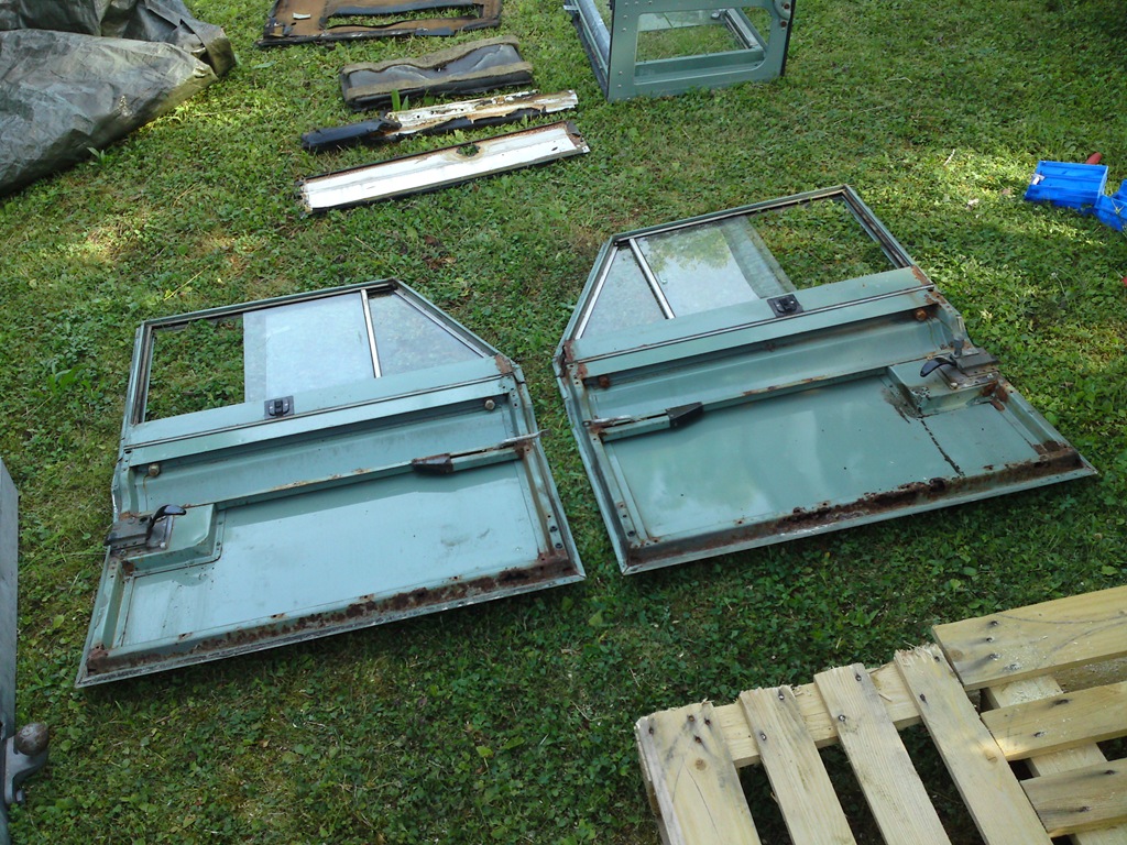 Des weiteren wurde das Karosserieteilelager im Vorgarten geöffnet und gesichtet. Einerseits sollten noch einige Teile zusätzlich untergebracht werden, andererseits wollte ich wissen, wie es genau um die Türen steht. Nach der Demontage sind diese nämlich weitgehend unberührt in den Stapel “zu erledigen” gewandert. Nun, erledigt soll werden.